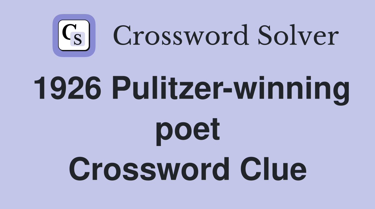 1926 Pulitzer winning poet Crossword Clue Answers Crossword Solver
