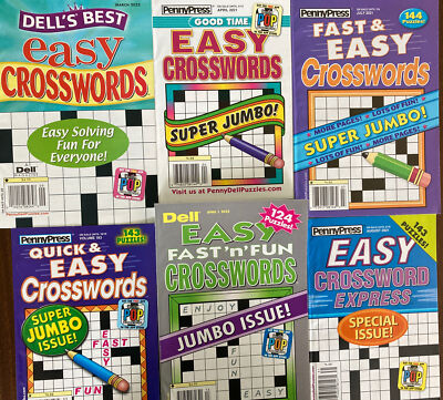 Lot of 6 Dell Penny Press Easy Crossword Puzzle Books Express Fun Quick