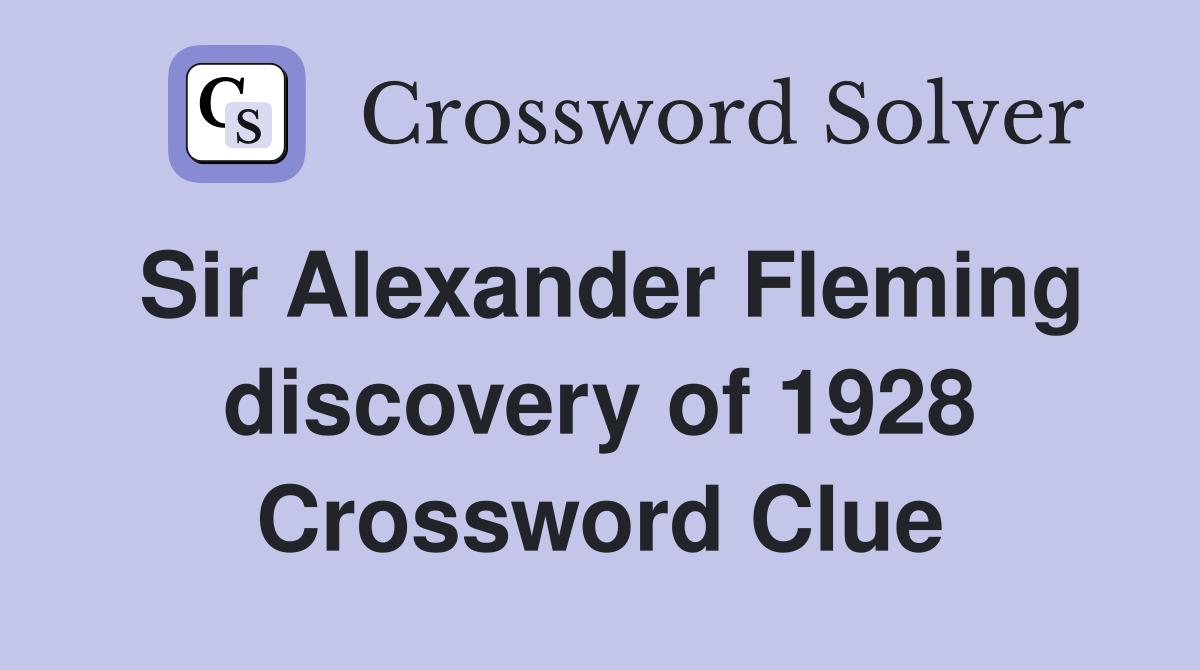 Sir Alexander Fleming discovery of 1928 Crossword Clue Answers