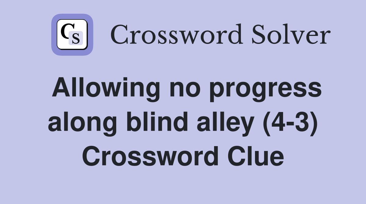 Allowing no progress along blind alley (4 3) Crossword Clue Answers
