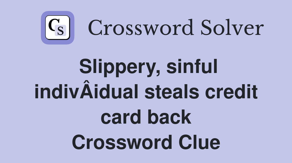 Slippery sinful indivÂidual steals credit card back Crossword Clue