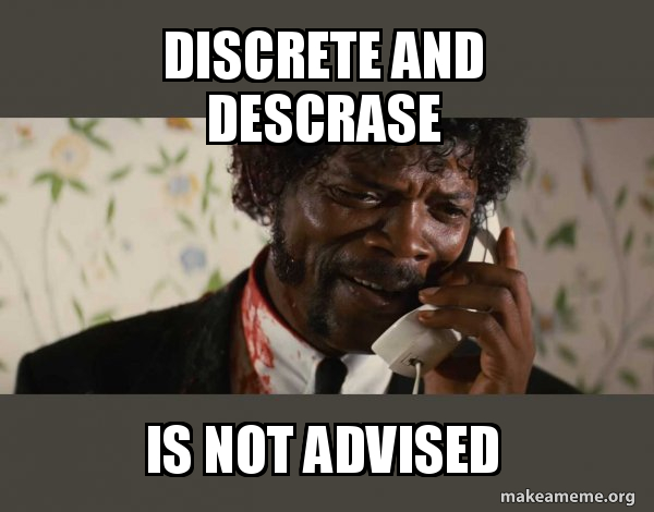 discrete and descrase is not advisedNegro Pulp Fiction Meme