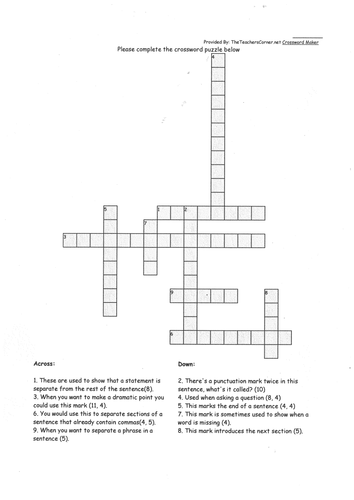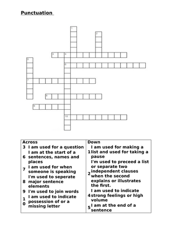 Punctuation Marks Crossword Punctuation Marks Words Puzzles TPT