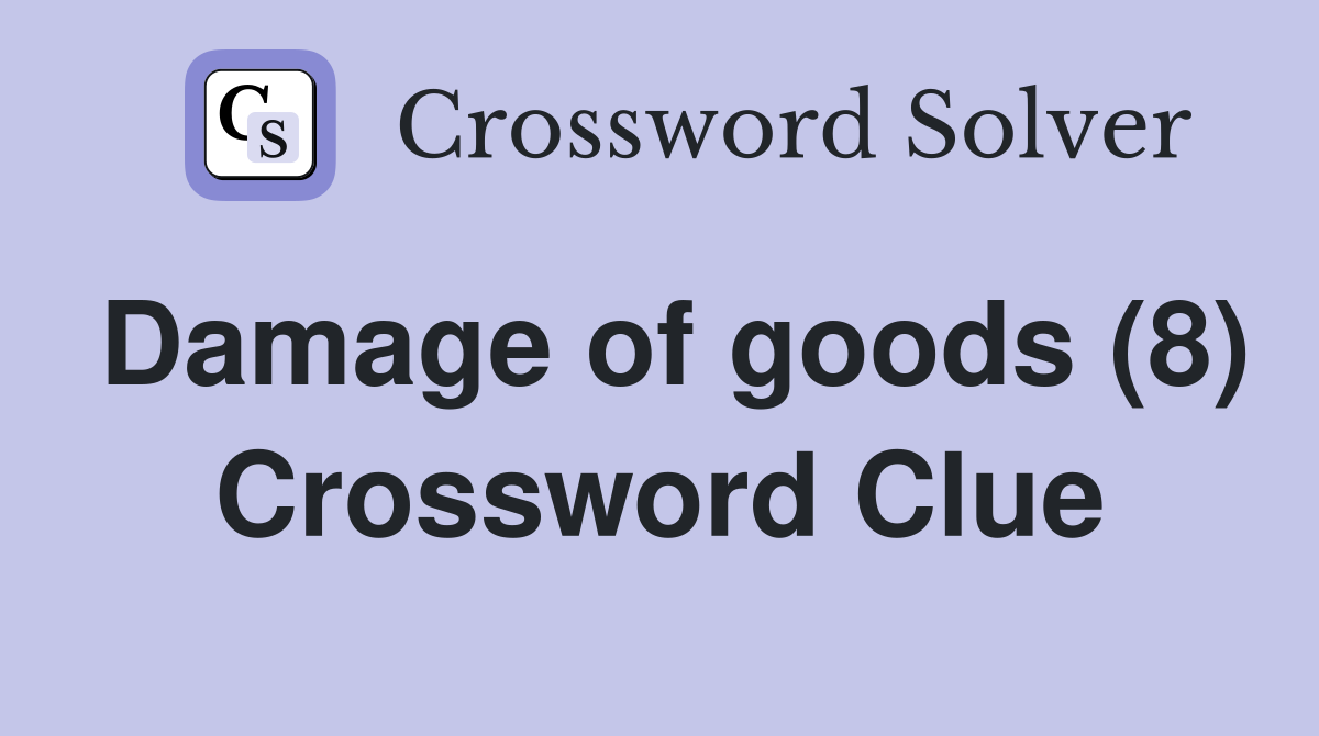 Damage of goods (8) Crossword Clue Answers Crossword Solver
