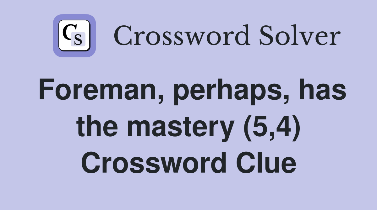Foreman perhaps has the mastery (5 4) Crossword Clue Answers