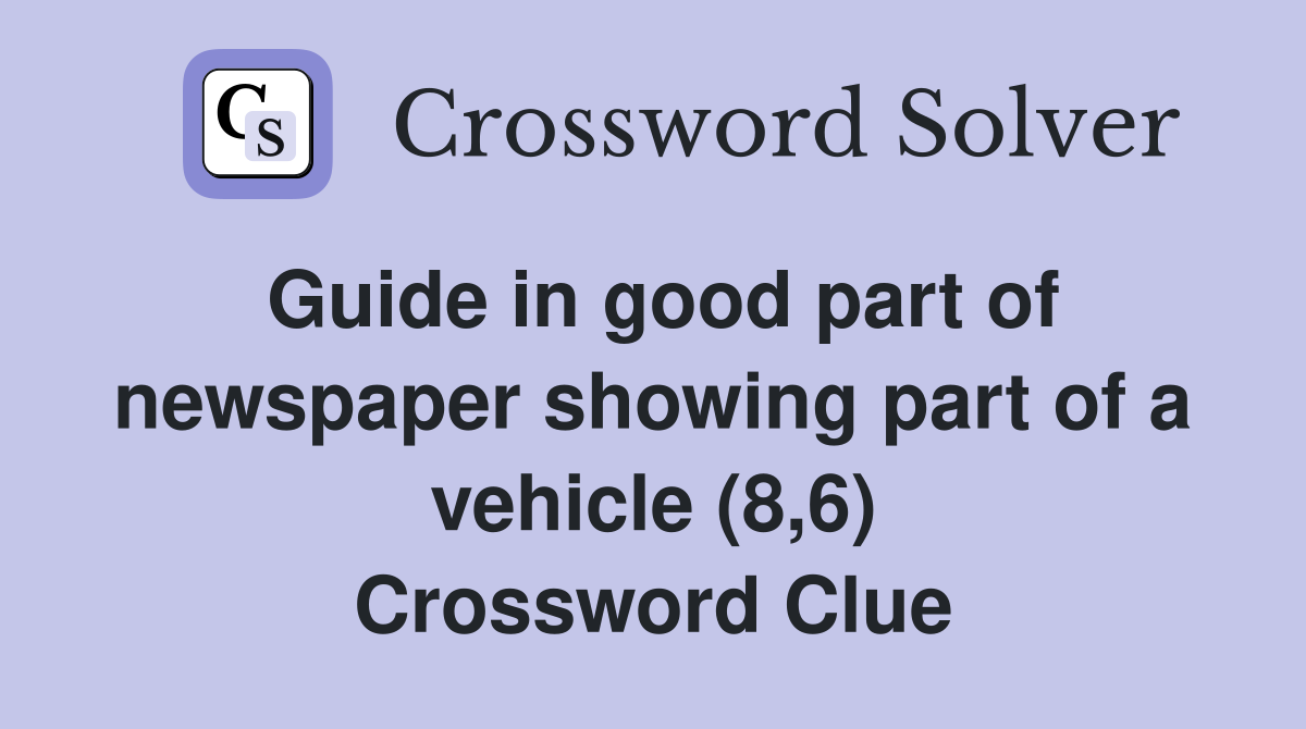 Guide in good part of newspaper showing part of a vehicle (8 6