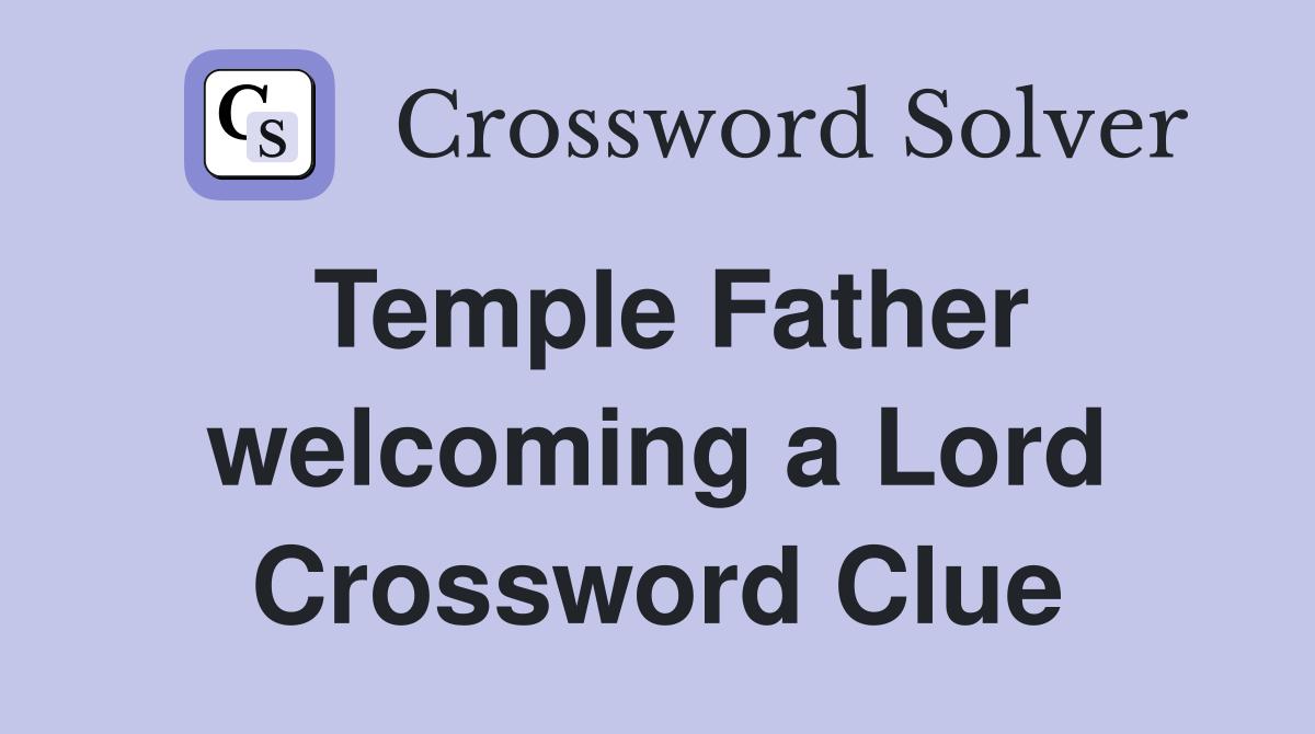 Temple Father welcoming a Lord Crossword Clue Answers Crossword Solver