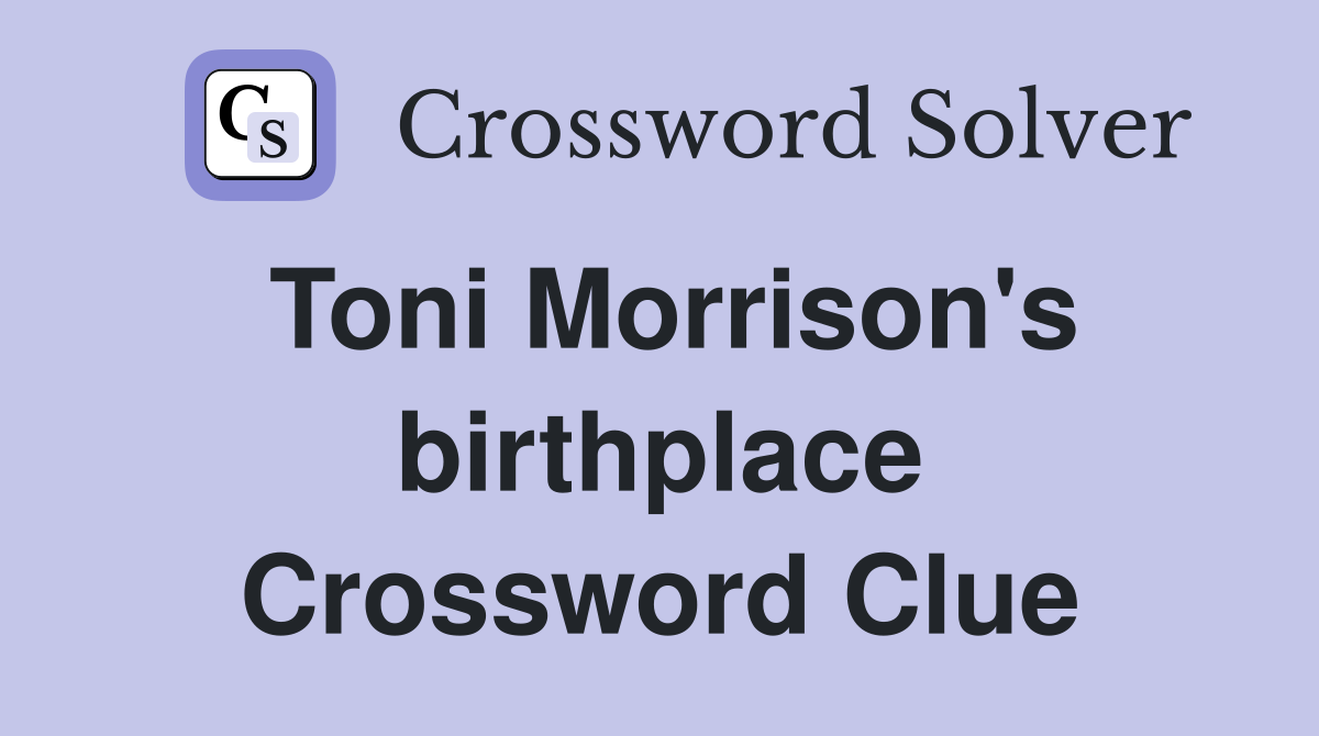 Toni Morrison #39 s birthplace Crossword Clue Answers Crossword Solver