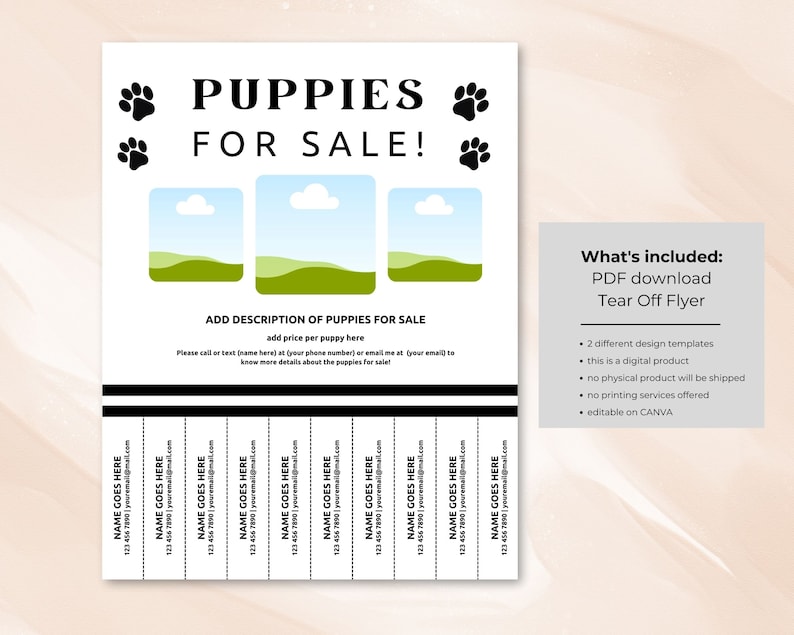 Puppies for Sale Flyer Pet Tear off Flyer Canva Template Dog