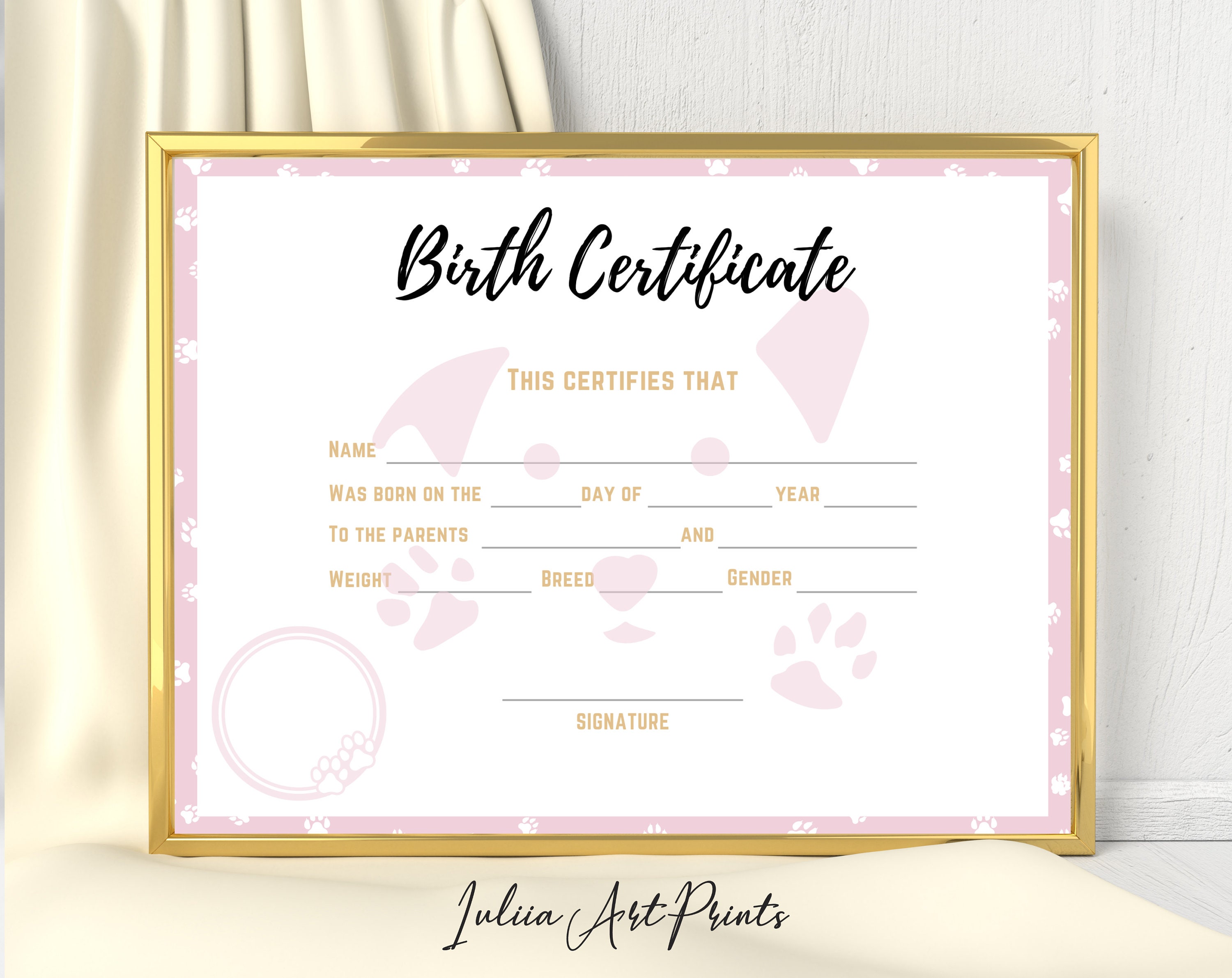 Puppy birth certificate digital download dog breeder etsy Artofit