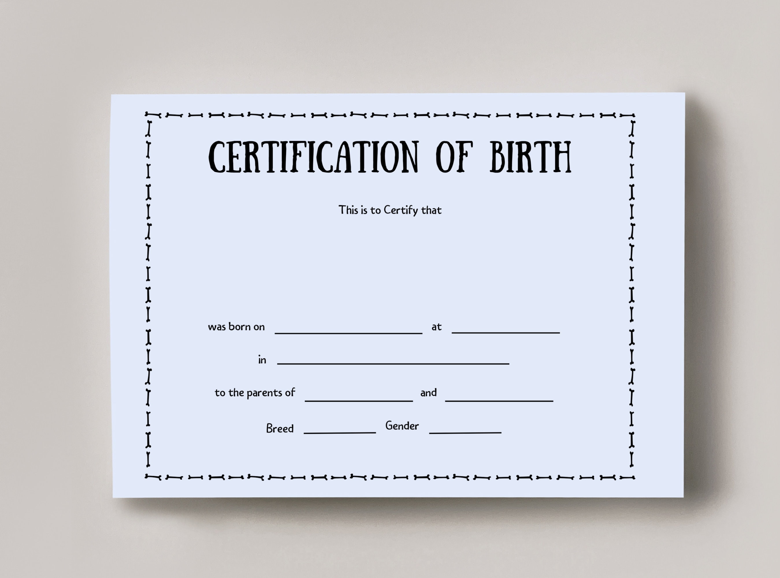 PRINTABLE Blank PDF Dog Birth Certificate Template New Puppy Etsy