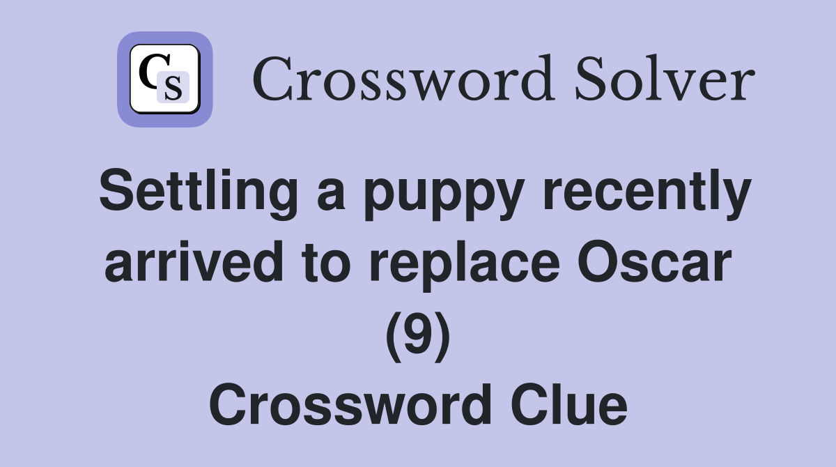 Settling a puppy recently arrived to replace Oscar (9) Crossword Clue