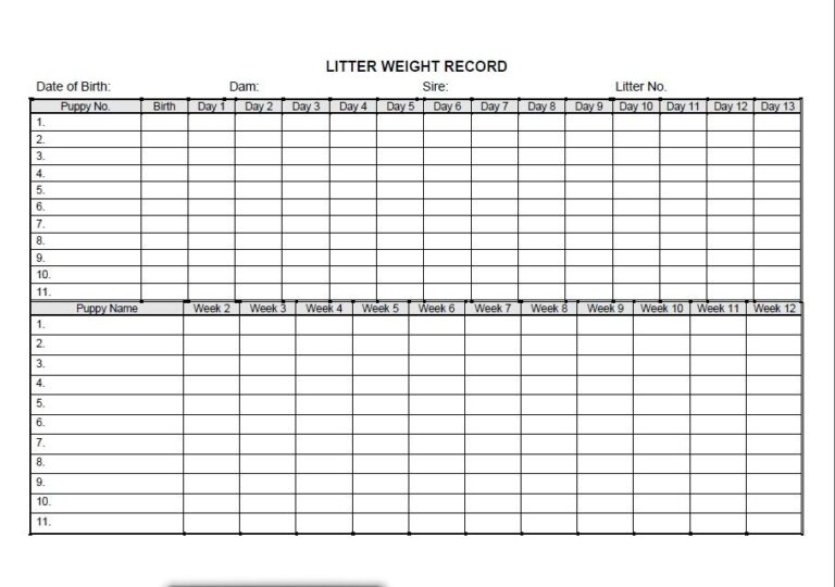 Weekly Puppy Weights Chart Breeder Litter Records Forms Canva Template