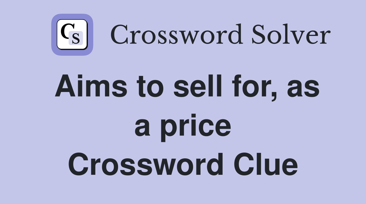 Aims to sell for as a price Crossword Clue Answers Crossword Solver