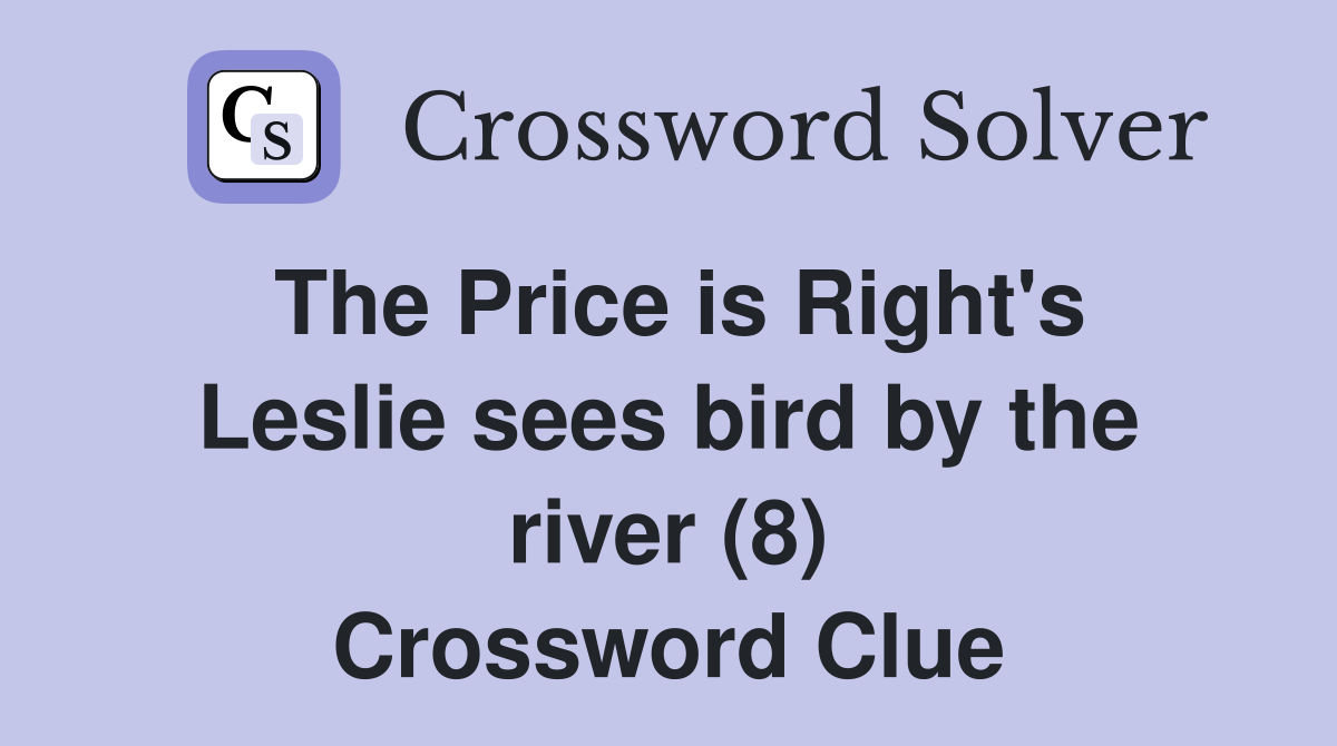 The Price is Right #39 s Leslie sees bird by the river (8) Crossword Clue