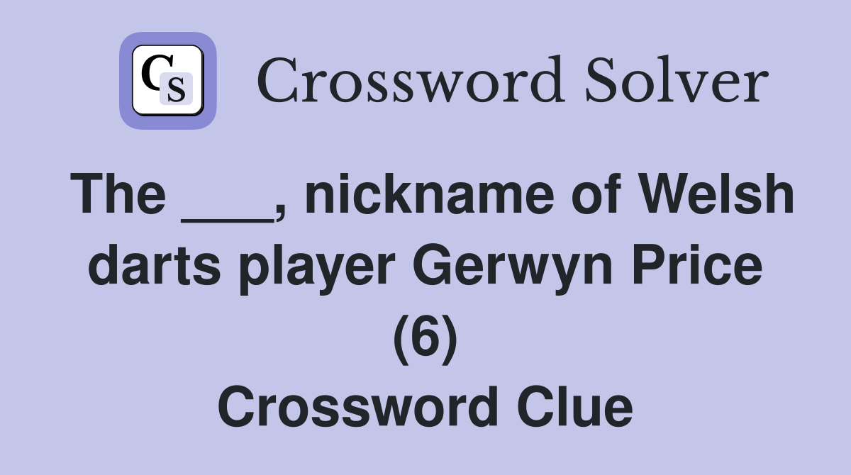 The nickname of Welsh darts player Gerwyn Price (6) Crossword