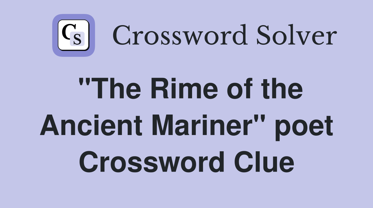 quot The Rime of the Ancient Mariner quot poet Crossword Clue Answers