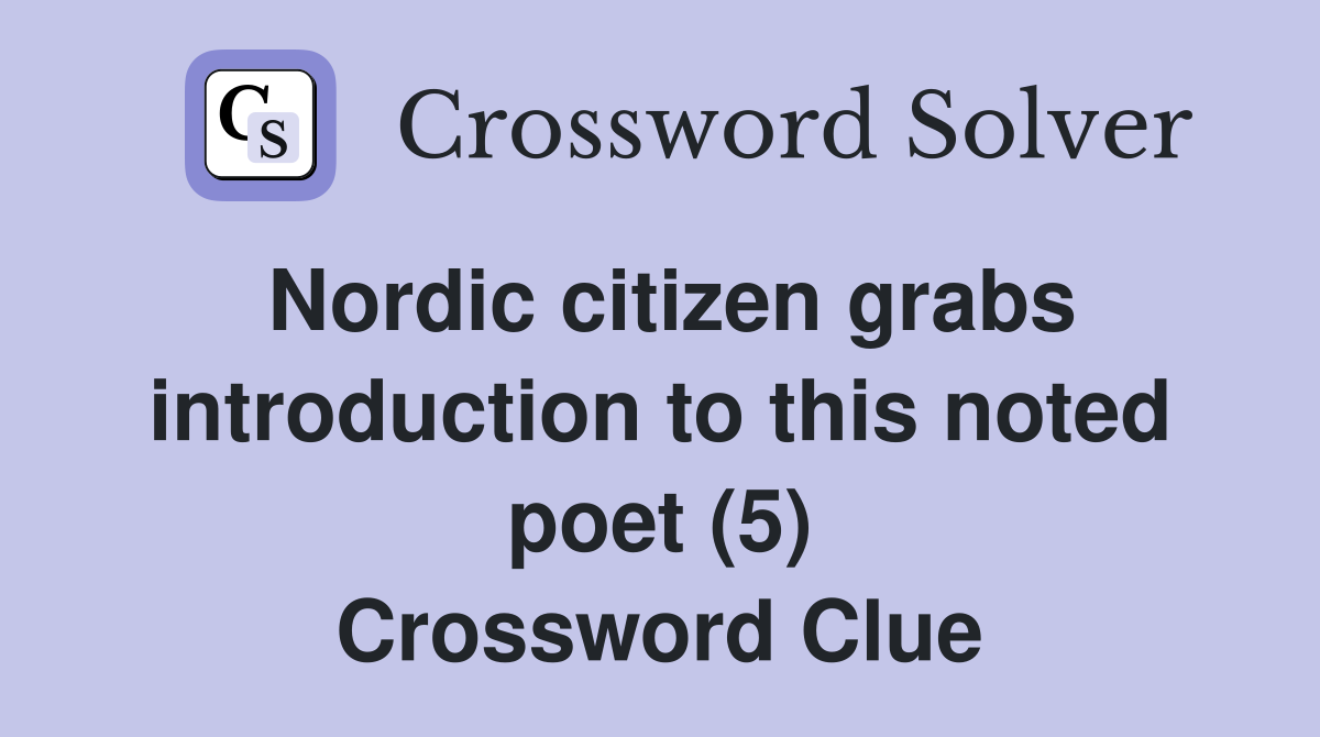 Nordic citizen grabs introduction to this noted poet (5) Crossword