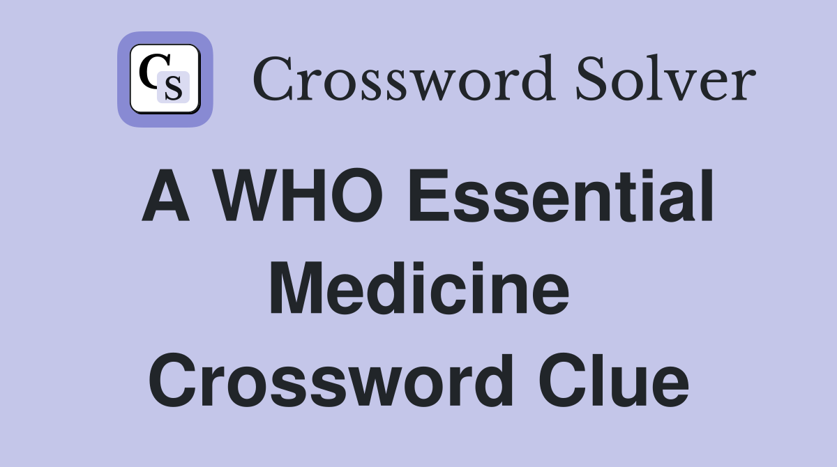 A WHO Essential Medicine Crossword Clue Answers Crossword Solver