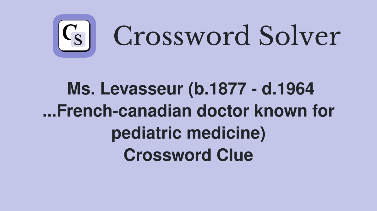 Ms Levasseur (b 1877 d 1964 French canadian doctor known for