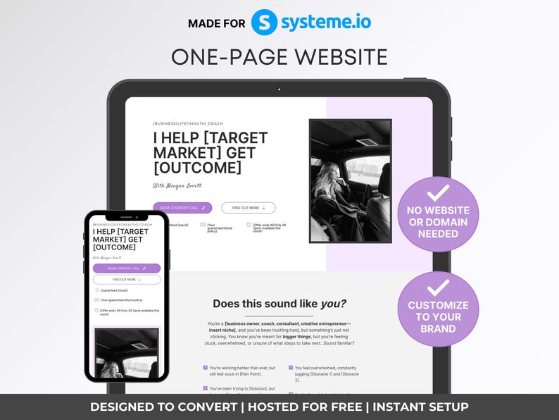 Systeme io Template Luxury Coaching One Page Website Purple Coach