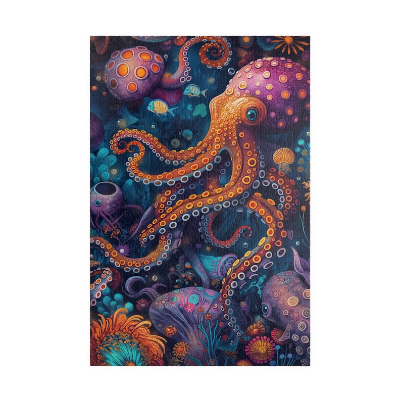Whimsical Octopus Jigsaw Puzzle Colorful Marine Art 1014 Pieces Etsy