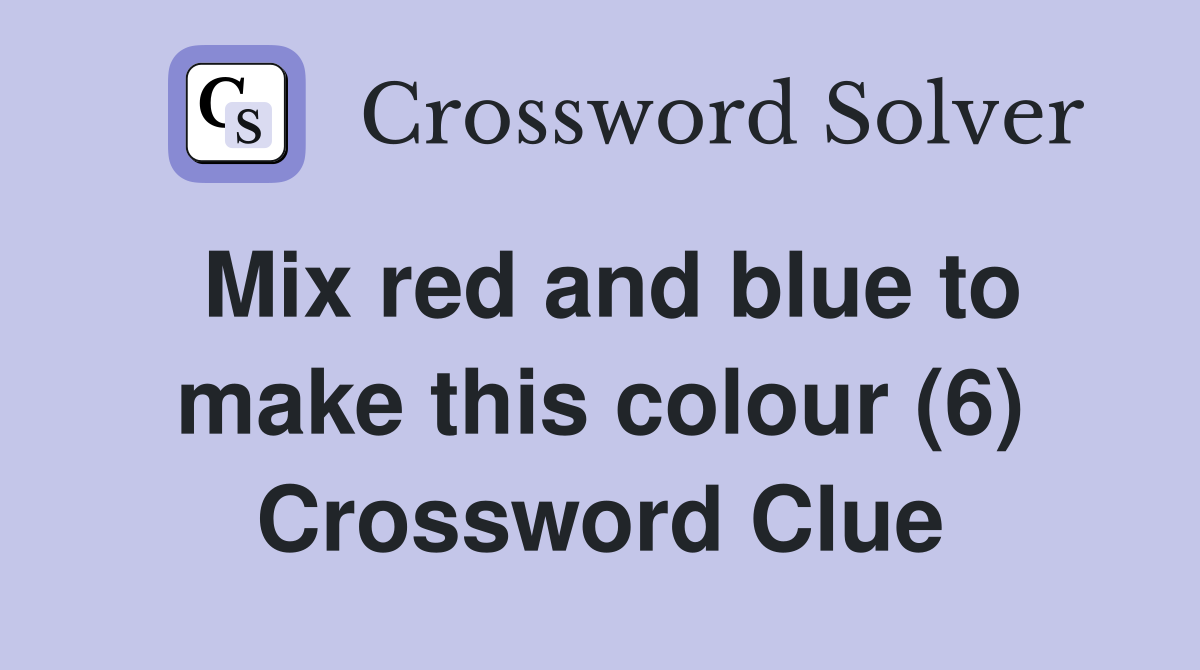 Mix red and blue to make this colour (6) Crossword Clue Answers