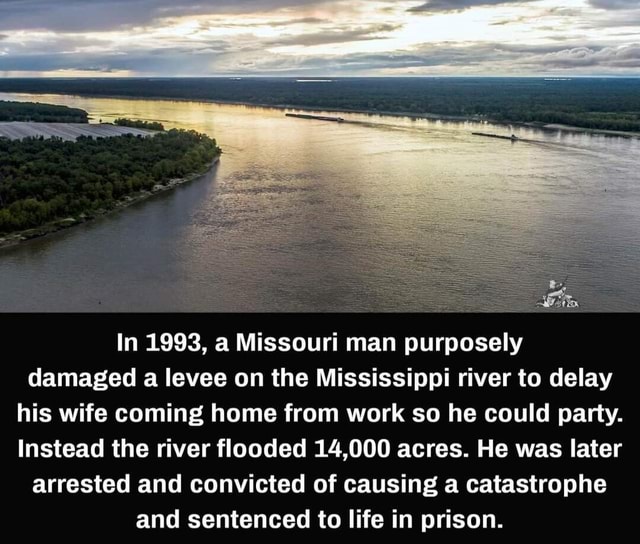 In 1993 a Missouri man purposely damaged a levee on the Mississippi