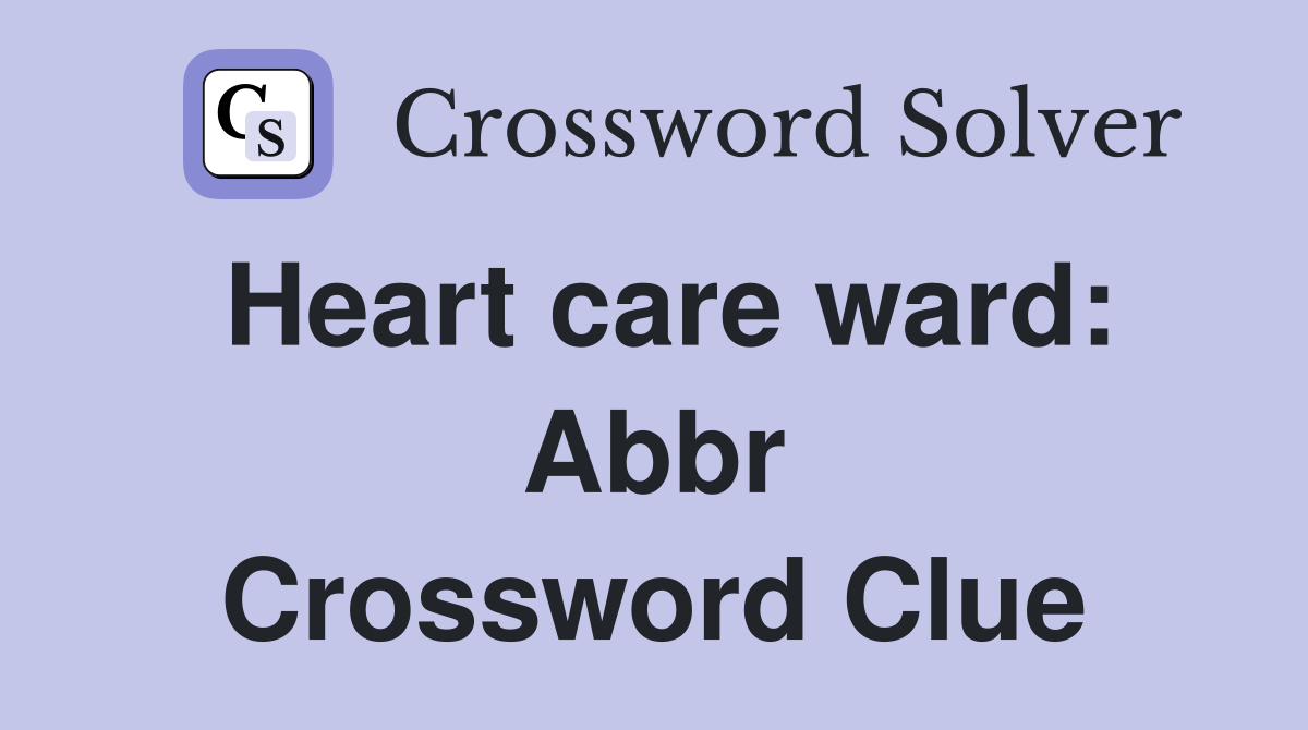 Heart care ward: Abbr Crossword Clue Answers Crossword Solver