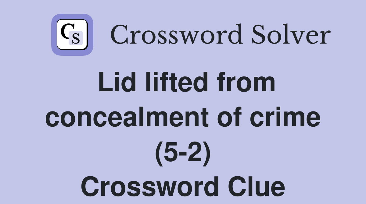 Lid lifted from concealment of crime (5 2) Crossword Clue Answers