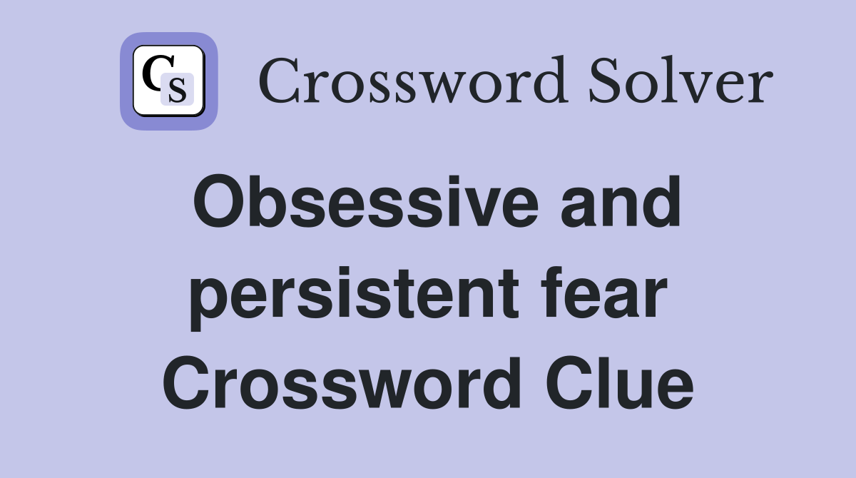 Obsessive and persistent fear Crossword Clue Answers Crossword Solver