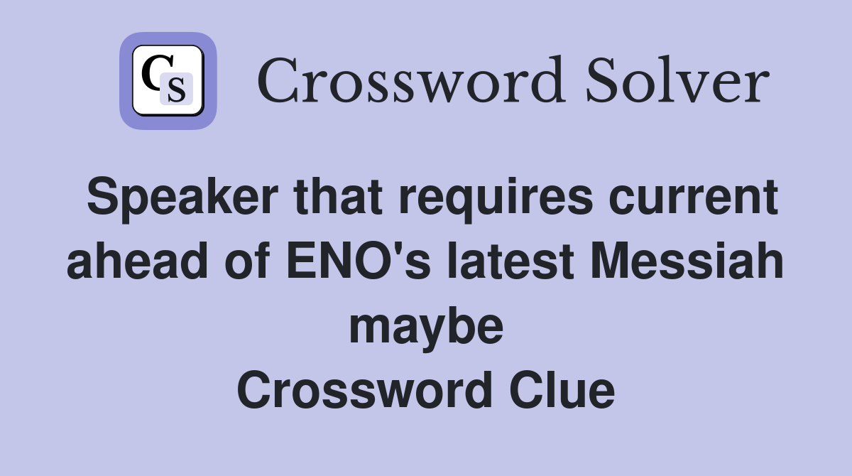 Speaker that requires current ahead of ENO s latest Messiah maybe