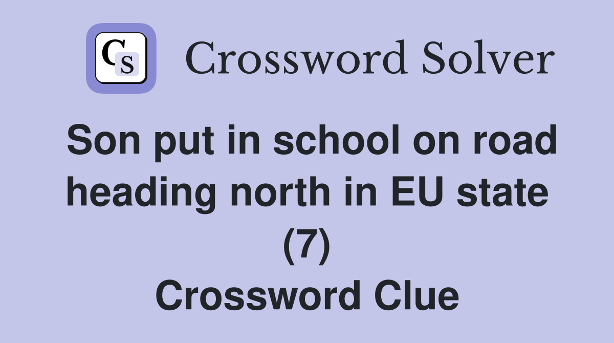 Son put in school on road heading north in EU state (7) Crossword