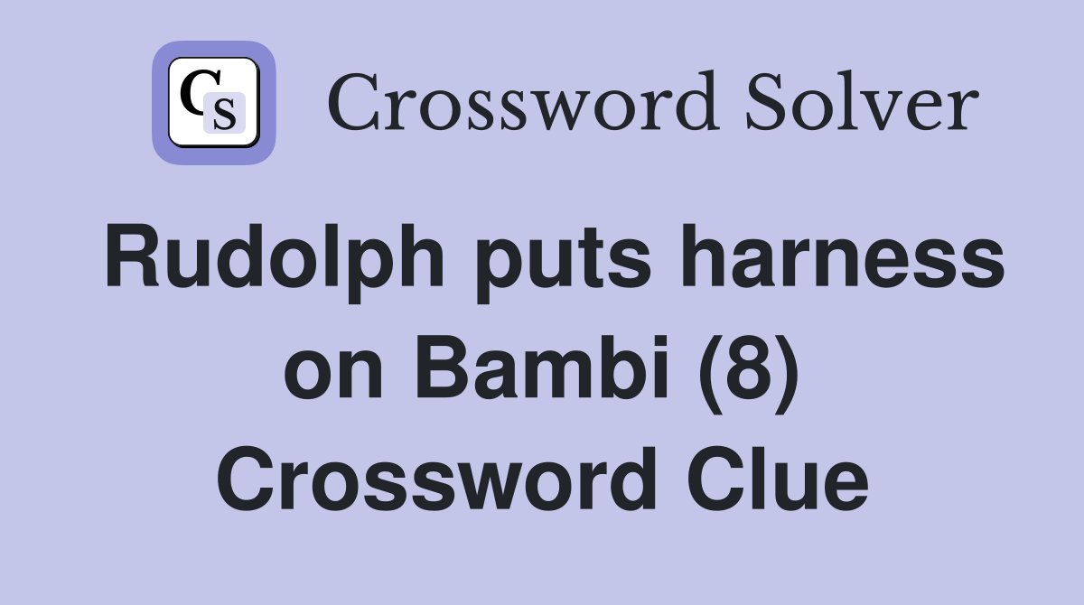 Rudolph puts harness on Bambi (8) Crossword Clue Answers Crossword