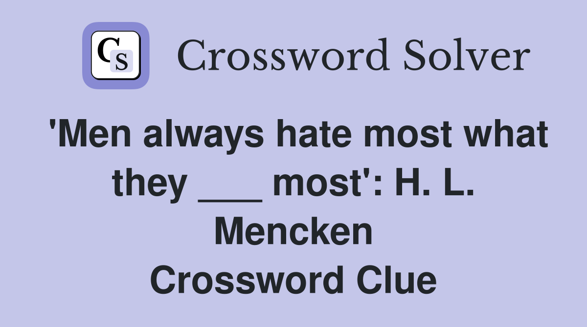 #39 Men alwaysmost what they most #39 : H L Mencken Crossword