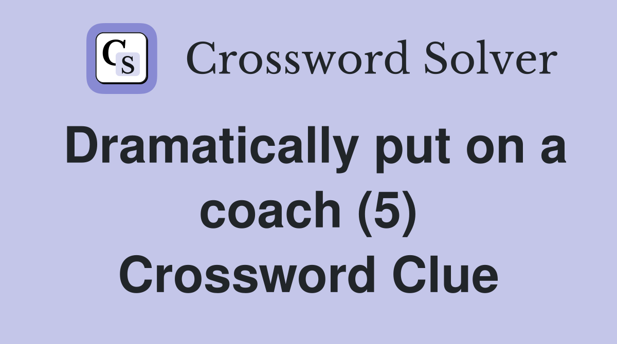 Dramatically put on a coach (5) Crossword Clue Answers Crossword Solver