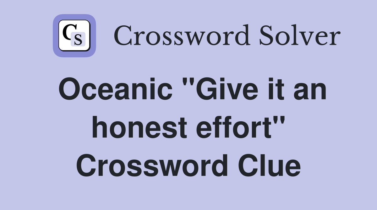 Oceanic quot Give it an honest effort quot Crossword Clue Answers Crossword