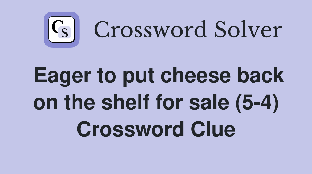 Eager to put cheese back on the shelf for sale (5 4) Crossword Clue
