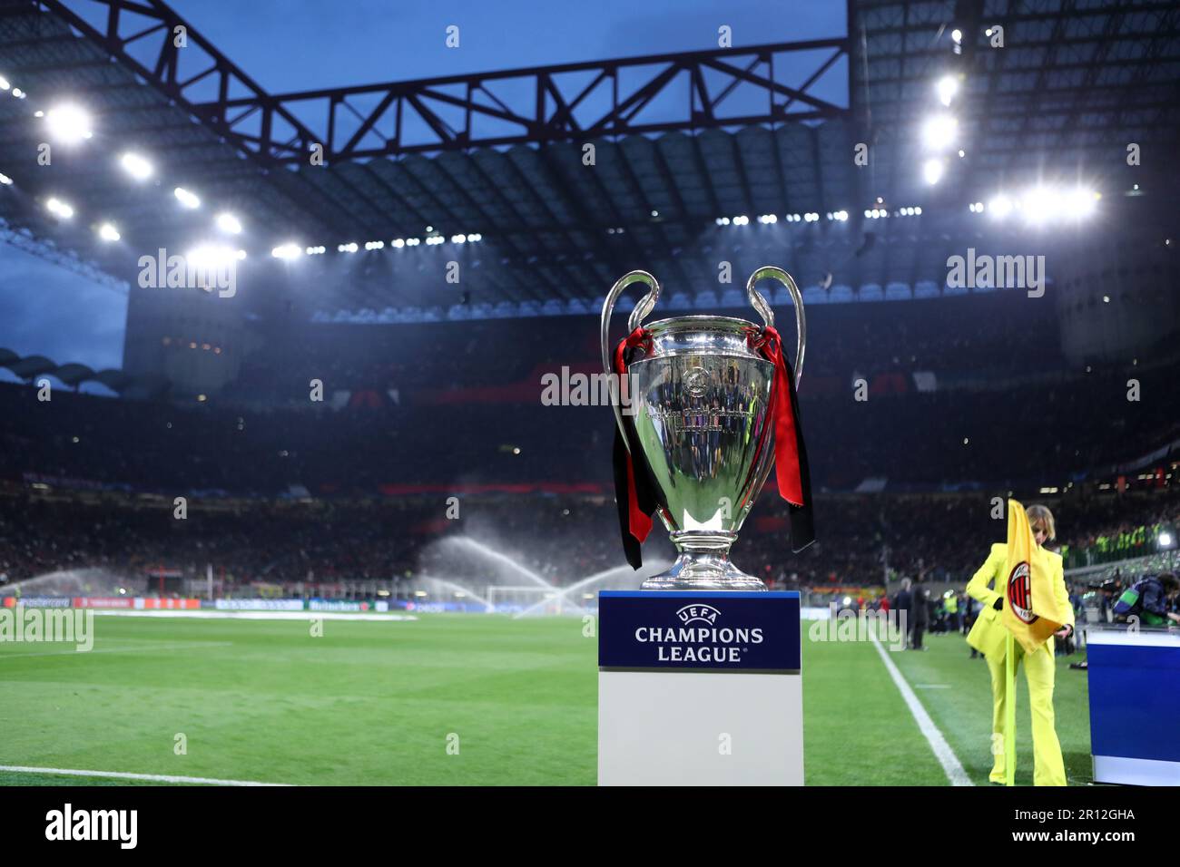 Milano Italy 10th May 2023 The Champions League trophy is put on