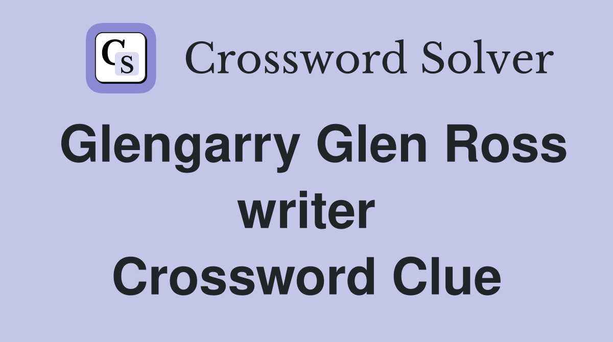 Glengarry Glen Ross writer Crossword Clue Answers Crossword Solver