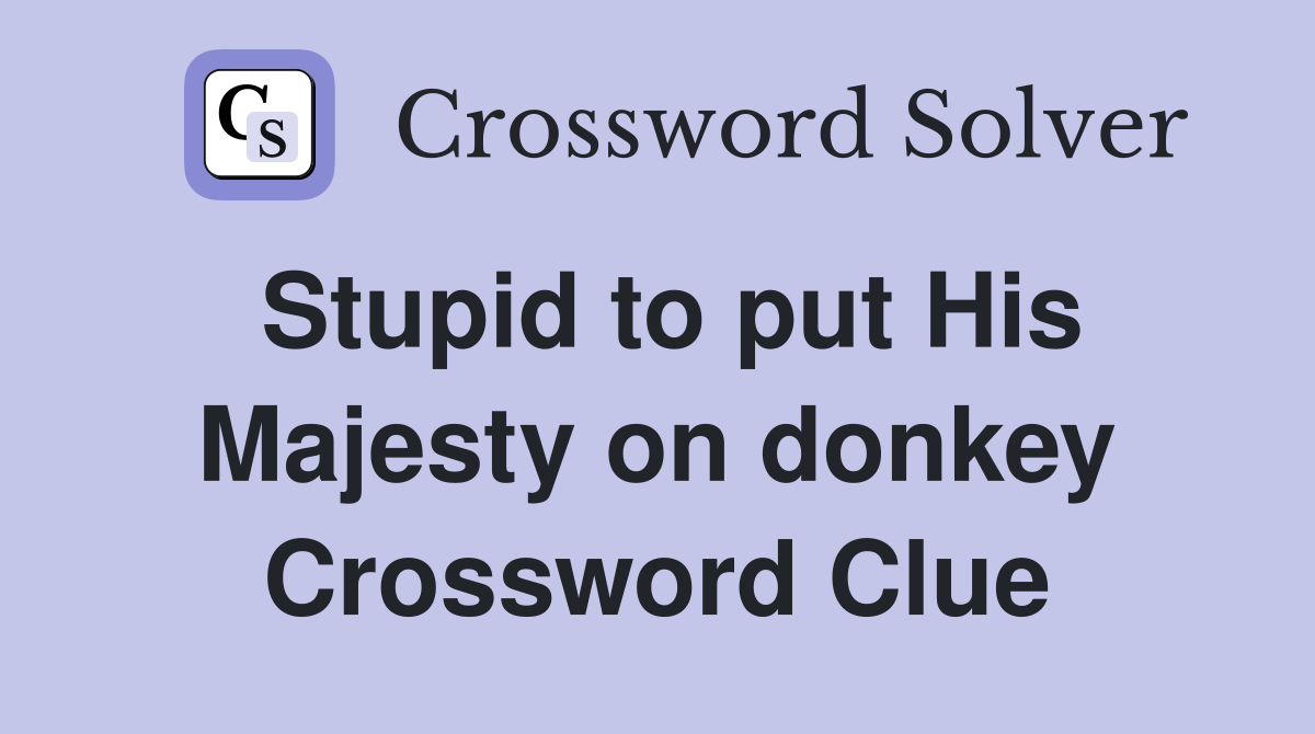 Stupid to put His Majesty on donkey Crossword Clue Answers