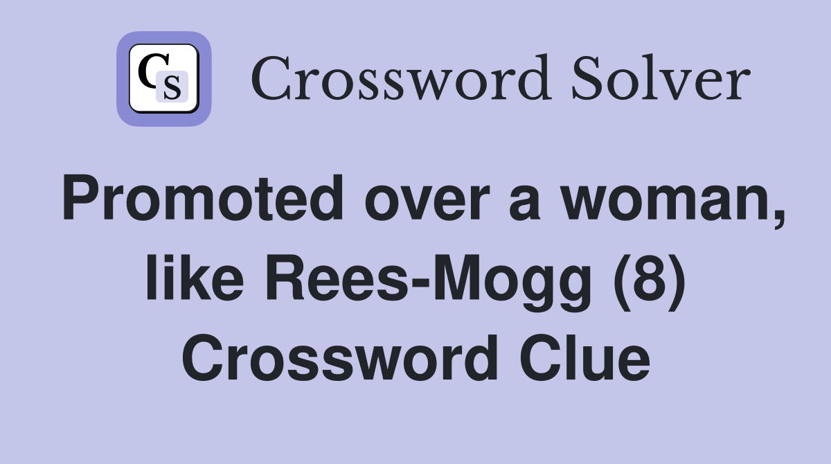 Promoted over a woman like Rees Mogg (8) Crossword Clue Answers