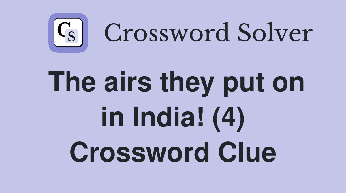 The airs they put on in India (4) Crossword Clue Answers Crossword