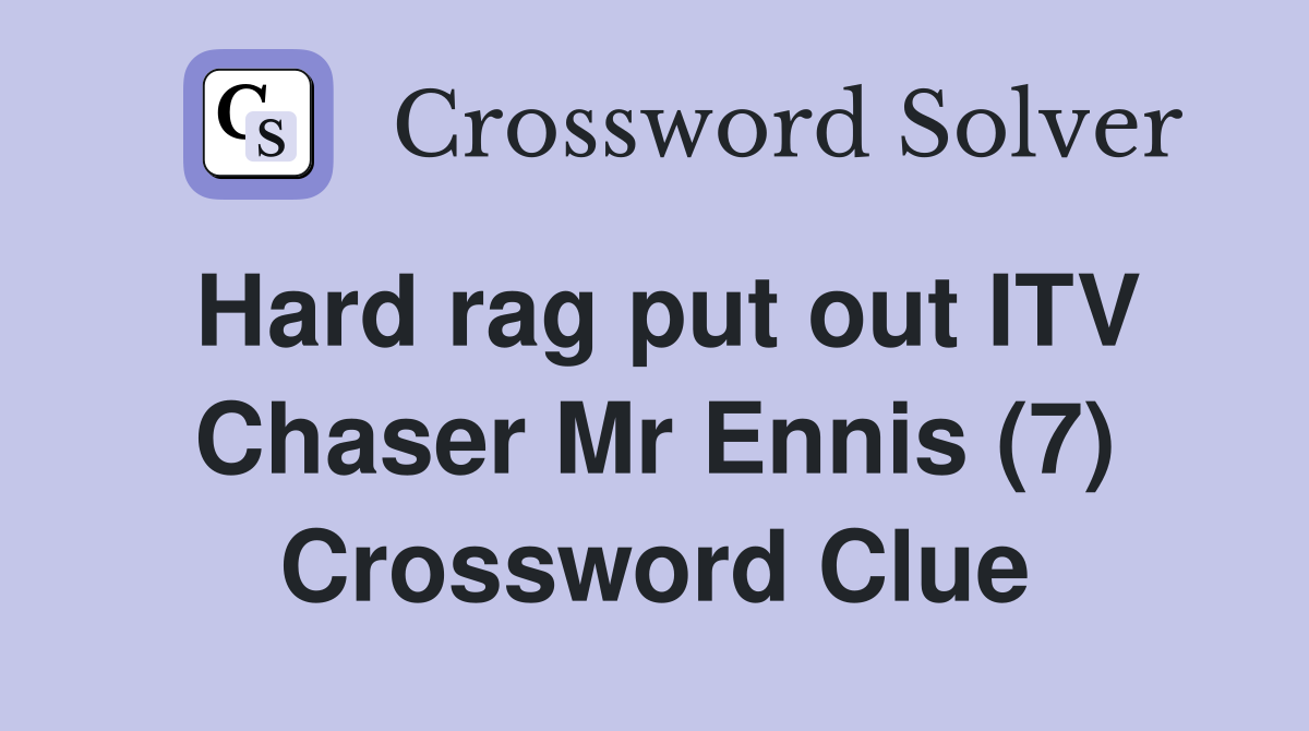 Hard rag put out ITV Chaser Mr Ennis (7) Crossword Clue Answers