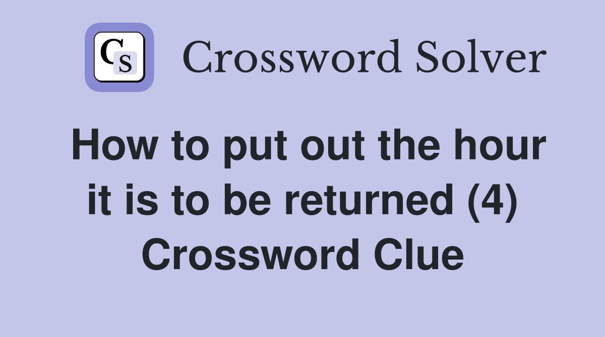 How to put out the hour it is to be returned (4) Crossword Clue