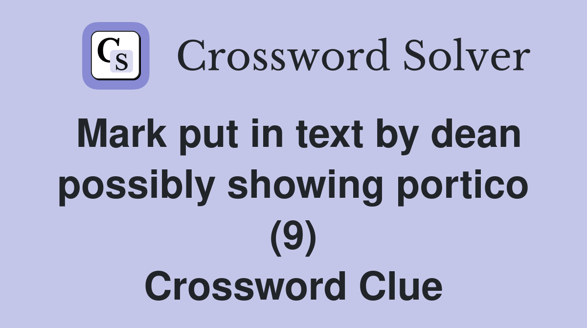 Mark put in text by dean possibly showing portico (9) Crossword Clue