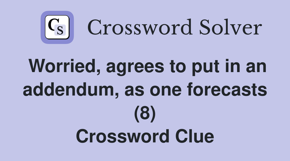 Worried agrees to put in an addendum as one forecasts (8) Crossword