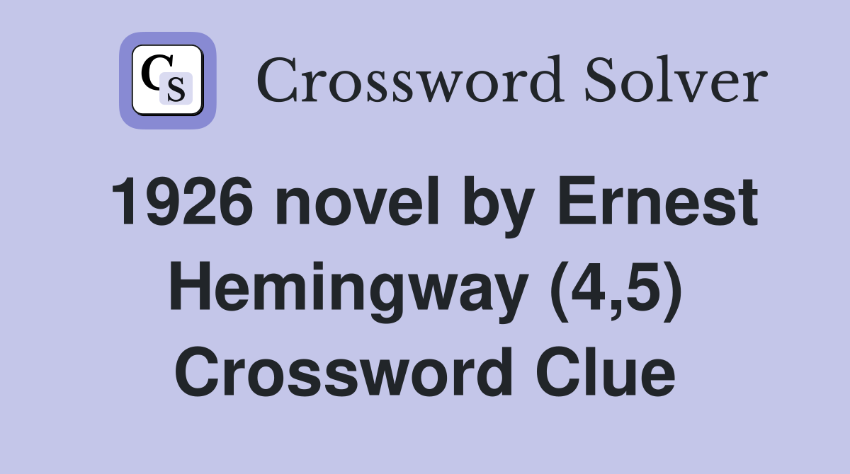 1926 novel by Ernest Hemingway (4 5) Crossword Clue Answers