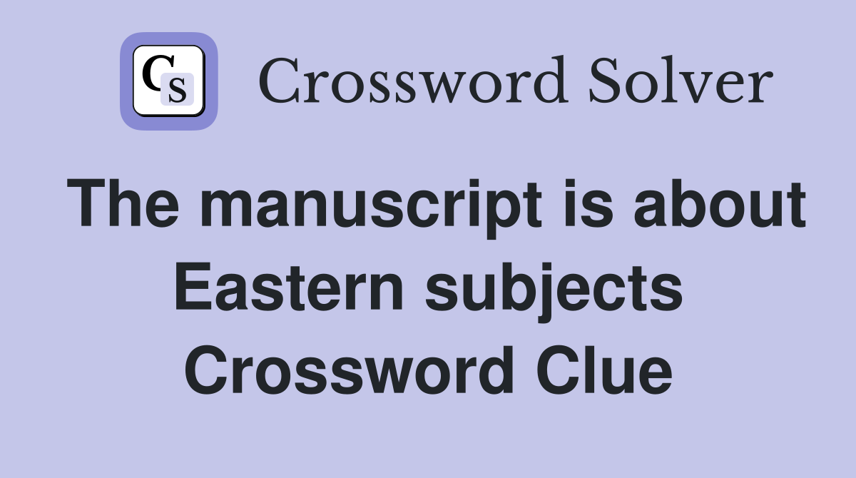The manuscript is about Eastern subjects Crossword Clue Answers