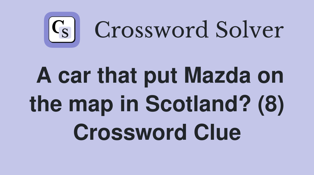 A car that put Mazda on the map in Scotland? (8) Crossword Clue
